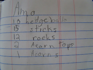 On the second page of this notebook they had an Ammo page spelled Amo. I didn't really know what it meant until Kristi said that is what must have been on the side of the shed when she was hiding easter eggs. So I had to go check it out.